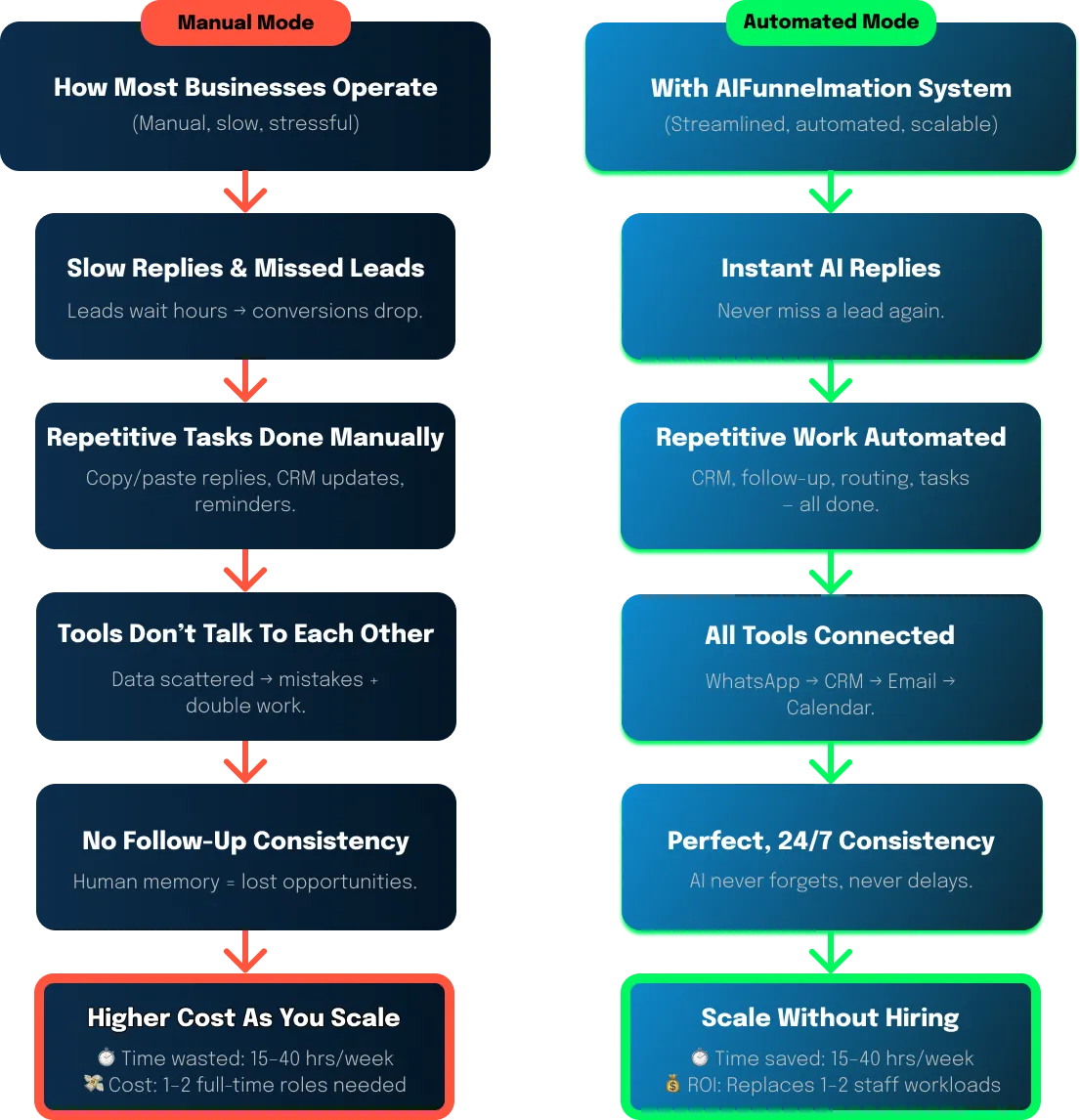 AIFunnelmation exists to help businesses work smarter, scale faster, and operate with fewer bottlenecks — using intelligent AI Agents and custom automation.